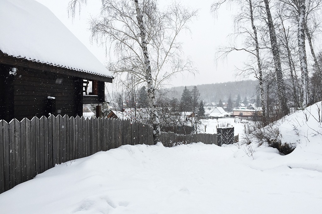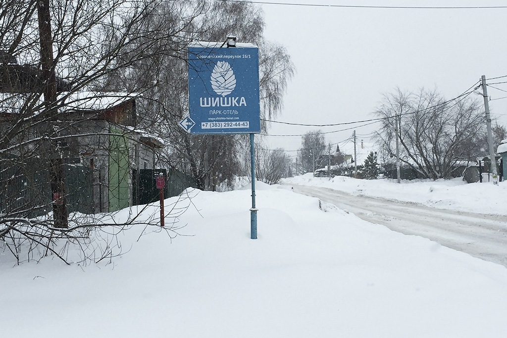 В декабре дорога до дома засыпана плотным слоем снега, а сам «Печатник», расположенный на холме с березняком, кажется заброшенным. Ближайшая автомобильная колея ведет только к парку-отелю «Шишка», который находится в ста метрах от садоводства.