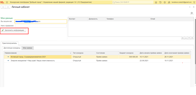 После регистрации на платформе они получают доступ в личный кабинет. Там хранится информация обо всех проектах, представленных на конкурсы фонда. Здесь они могут проверить свою заявку еще до ее оформления. Система сама анализирует бюджет проекта, считает налоги и определяет, насколько инициативная группа или организация укладывается в заявленные сроки. Кроме того, участники автоматически видят статус и решение по своей заявке и средние баллы по всем критериям оценки. Так участники могут видеть точки роста и делать работу над ошибками.
