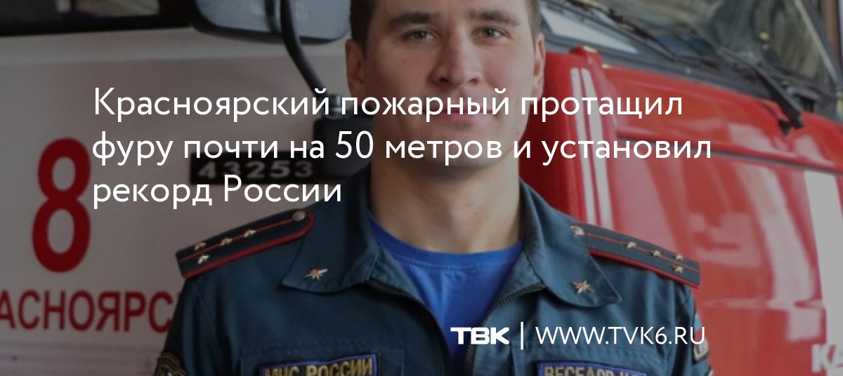 Красноярский пожарный протащил фуру почти на 50 метров и установил рекорд России