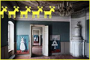 Под этим названием — «Белая школа» — в доме Щепочкина продолжает уже много месяцев жить и меняться особое пространство — театрально-поэтическая фантазия художницы Кати Рожковой, которая придумала населить опустевшие интерьеры школы живописными образами детей. Призраки, воспоминания или приветы из будущего, написанные темперой на больших листах бумаги, они светят бледным светом со стен анфилад старого дома, странно соединившего два края Нового времени: эпоху Просвещения и СССР 1950-х. Хотя сам проект открылся еще летом, придуман он был зимой и по какой-то счастливой карантинной случайности все время продлевался и продлевался, чтобы снова оказаться в бесприютном снежном пространстве. В одном из интервью Рожкова рассказывает: «Я зашла в этот дом, когда на покрашенном суриком наборном паркете лежал снег. Его надуло из-под балконной двери. Изо рта шел пар. Северный свет лился через окна, как на картинах Вильгельма Хаммерсхёя или Григория Сороки. Роскошные расписные потолочные плафоны, советская масляная краска на уровне глаз — такой полосой красили стены везде: в школах и детских садах, больницах и подъездах».