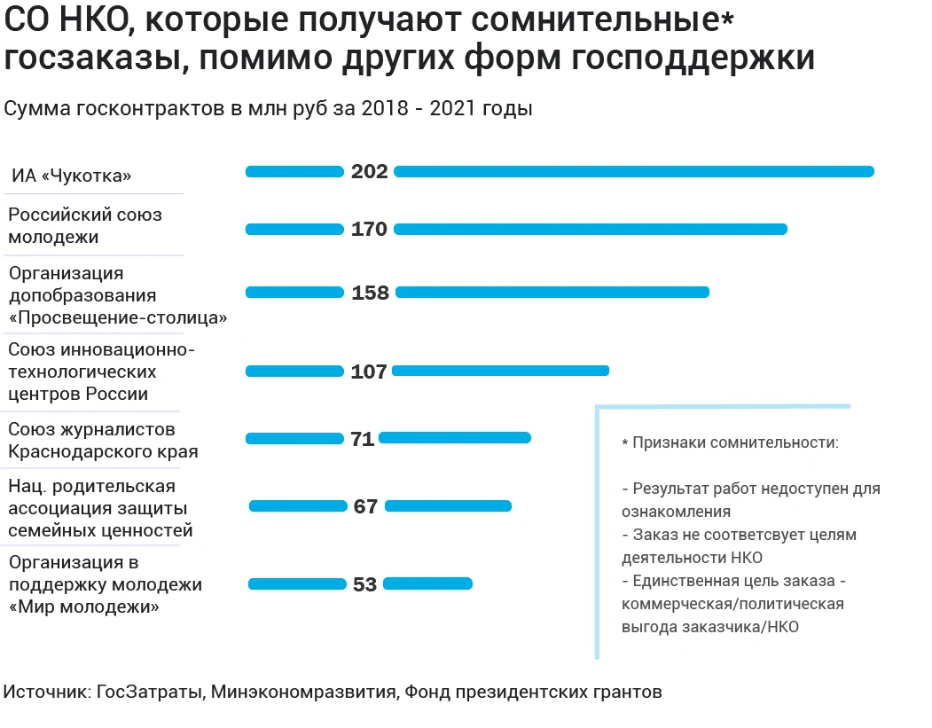 Это только вершина айсберга: понять, сколько всего ГОНГО среди получателей господдержки, непросто, так как нет соответствующего реестра.