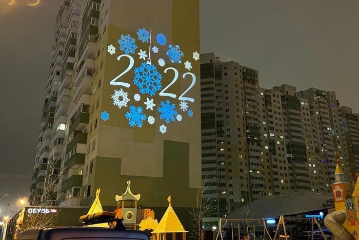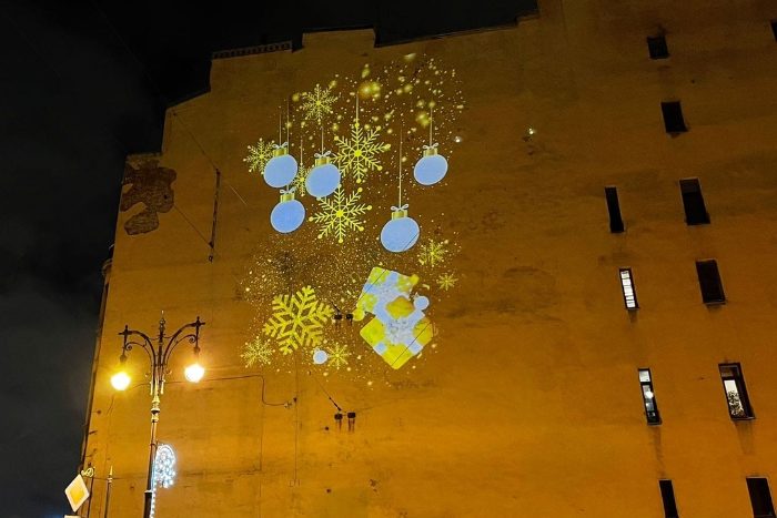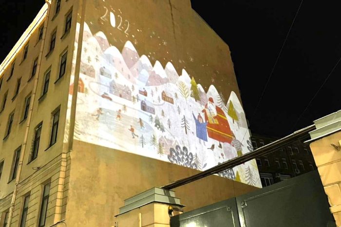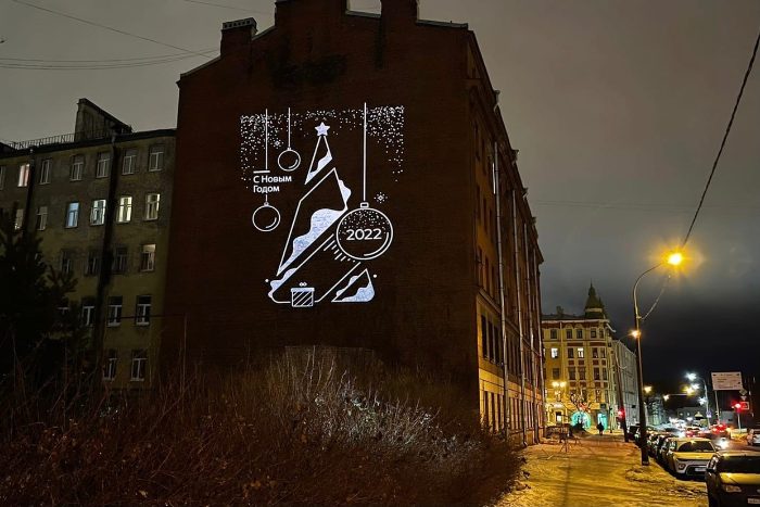 На зданиях в Петербурге появились световые инсталляции в виде новогодних открыток. Об этом сообщает «Ленсвет», который запустил акцию.