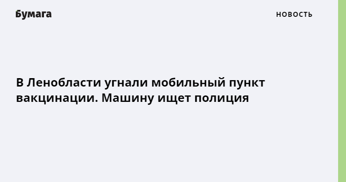 В Ленобласти в ночь на 14 ноября похитили мобильный пункт вакцинации, который принадлежит Тихвинской межрайонной больнице. В ГУ МВД «Бумаге» сообщили, что сейчас ищут машину.