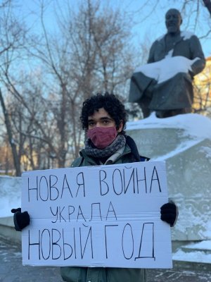 На плакате у Макичяна было написано: «Новая война украла Новый год».