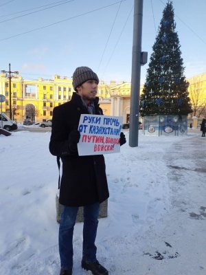 В Петербурге задержали местного жителя Алексея Хренова, который провел одиночный пикет на Сенной площади против ввода российских войск в Казахстан. Об этом ОВД-Инфо сообщил его знакомый.