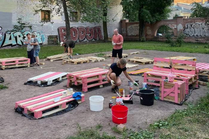 В 2021 году петербуржцы во дворе дома 35 на 10-й линии Васильевского острова соорудили скамейки, столики, а также есть небольшой помост для занятий йогой — до этого территория была завалена мусором и битым стеклом. Инициаторы благоустройства Никита и Александра рассказали «Бумаге» об инициативе, реакции соседей и будущем двора.