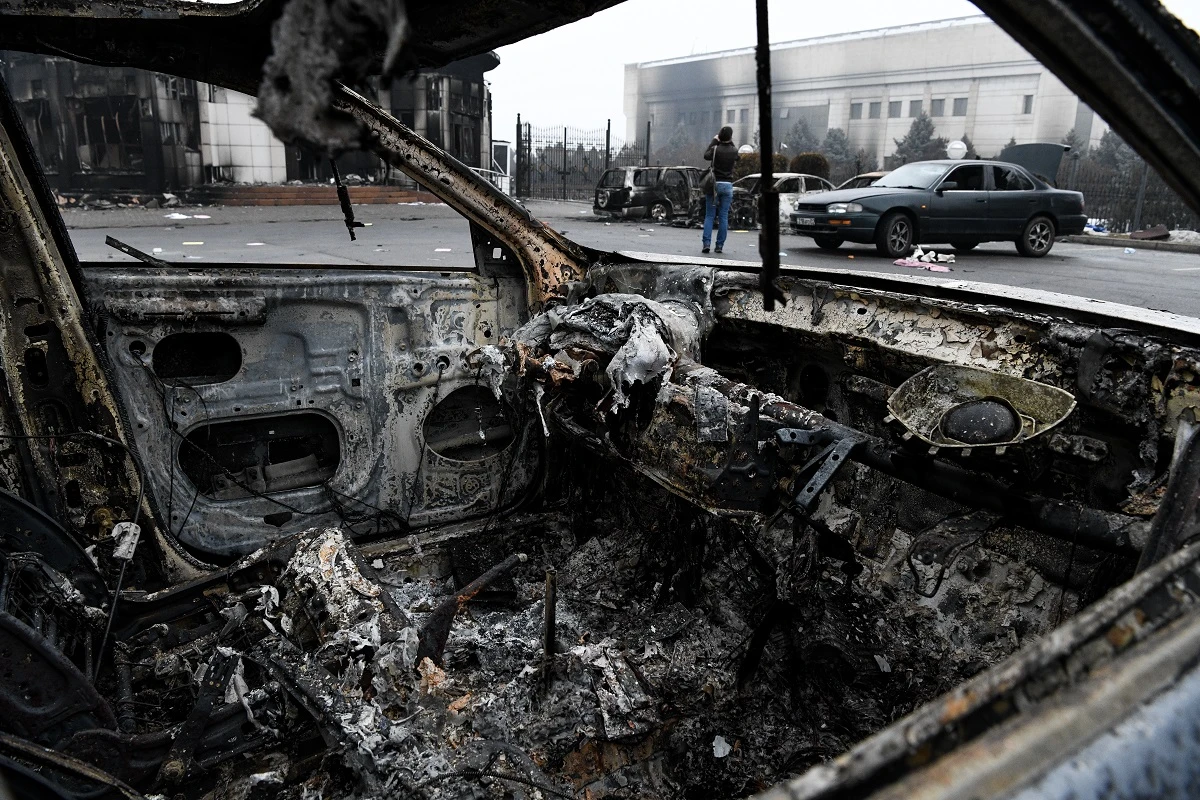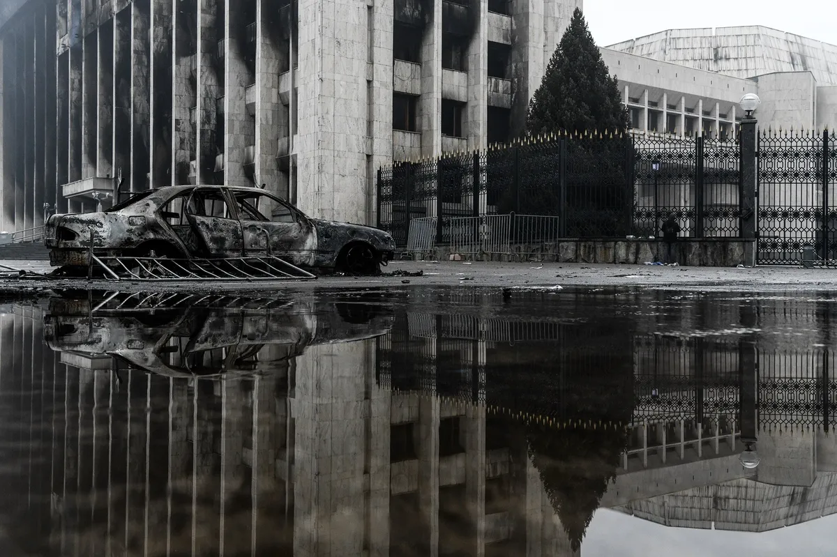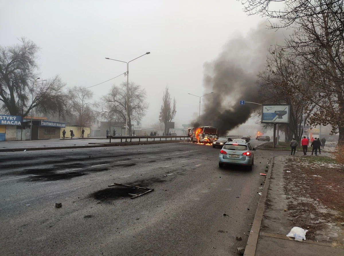 Если до этого момента все происходящее более-менее задокументировано и подтверждается несколькими источниками, то о событиях, начавшихся с утра 5 января, до сих пор имеются достаточно обрывочные сведения. Точнее, началось все еще вечером 4 января, когда группа агрессивных молодых людей стала жечь полицейские автомобили. Едва не досталось корреспонденту «Медиазоны Центральная Азия» (российская «Медиазона», по мнению Минюста, считается «иноагентом». — Ред.), который пытался снимать происходящее. К утру, однако, пожары заполыхали по всему городу.