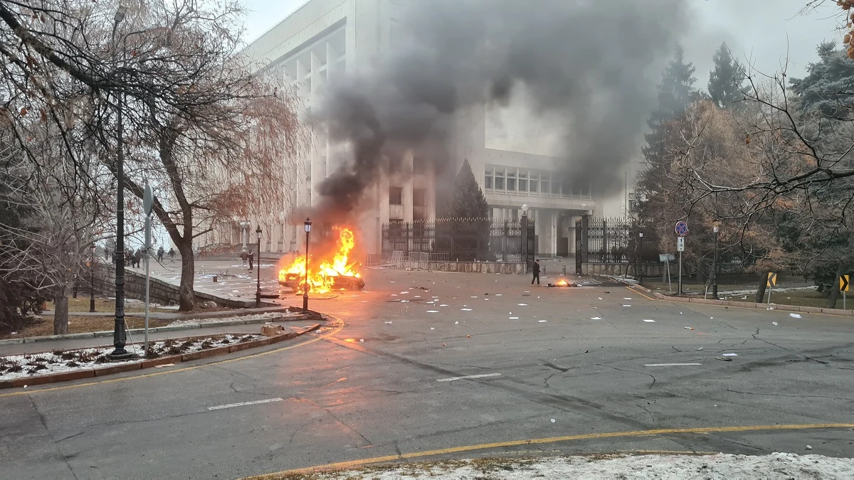Особенно сильно ситуация накалилась в Алматы, где явно подготовленные группы людей (цифра 20 тысяч настолько поразительна, что в ней сомневаются даже эксперты государственных каналов Казахстана; впрочем, вполне очевидно, что погромщиков было много) захватили и почти уничтожили ряд объектов государственной власти, включая администрацию города, прокуратуру, аэропорт и здание Комитета национальной безопасности. Справиться с ними казахстанские силовики и военные не могли (или не хотели) несколько дней, и на помощь в поддержании порядка Токаев призвал войска ОДКБ. В итоге внутренний конфликт превратился в большую политическую проблему для всех ее акторов, включая приехавших по зову Токаева иностранных военных, подавляющее большинство из которых — российские.