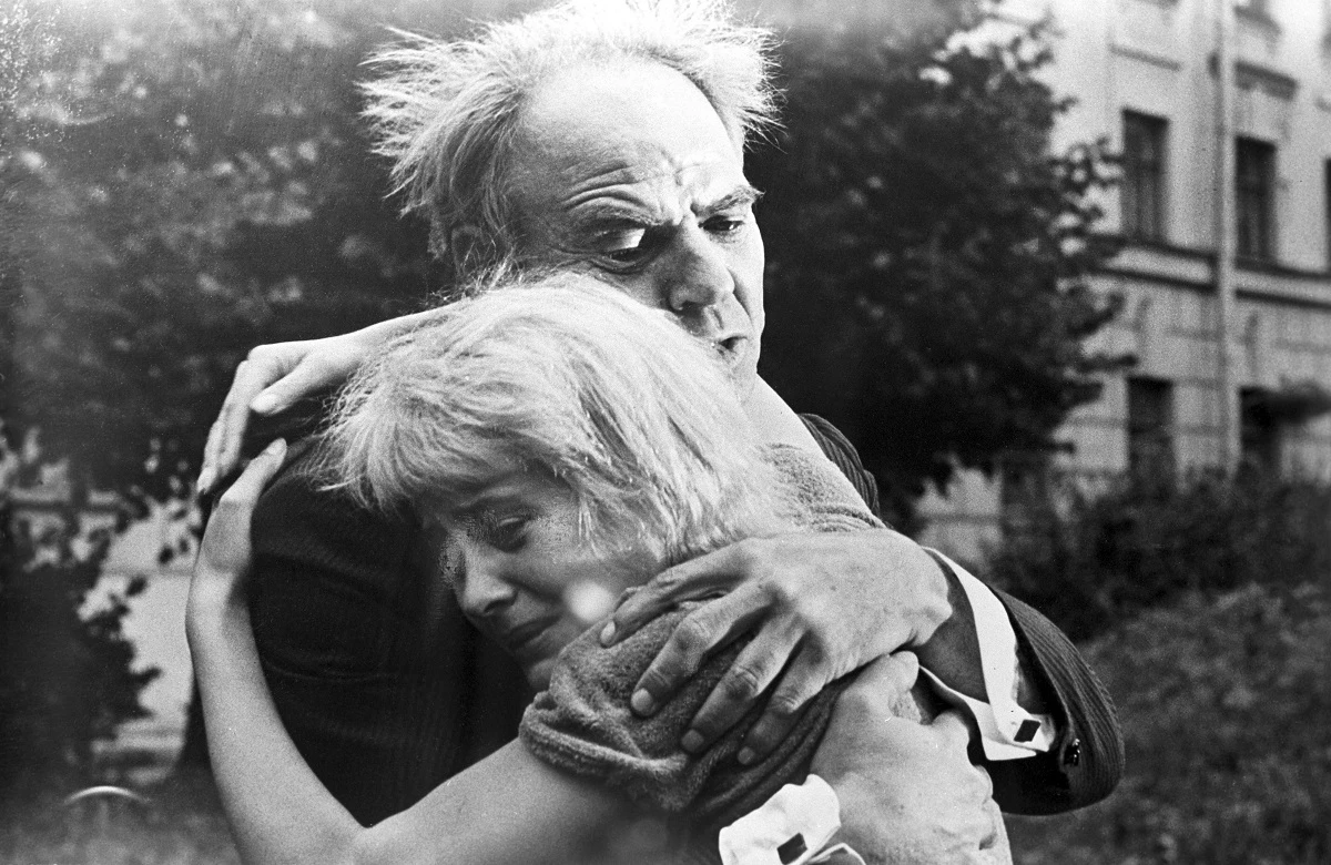 — Нет. Хотя когда переснимали мою сцену истерики в «Монологе» из-за технического брака и переснимали ее через почти несколько месяцев после того, как ее сняли. И уже павильон наш сломали, мой диван, на котором я плакала, переместили в другой павильон, в котором были грибы, мухоморы вокруг, избушка стояла, какая-то сказка снималась. И поставили мой диван именно в этот павильон. И я вот в этой ночной рубашке, в халате рыдаю, плачу. Вокруг грибы стоят. Позвонили Глузскому, который играл моего деда, чтобы он мне подыграл. Он приехал, у нас были нежнейшие отношения, мы любили друг друга, и всегда с тех пор я его называла «дед», а он меня «внучка» и т.д. Начали снимать. И я в этом халате плачу, рыдаю. Но понимаю прекрасно, что рыдать-то я рыдаю, но не могу вправо на полметра отклониться, потому что выйду из кадра, и налево не могу отклониться, потому что выйду из кадра, а вперед тоже не могу, потому что выйду из резкости. Весь монолог свой проговариваю, плачу, вся в слезах, в соплях. Закончился монолог, я слышу, что камера продолжает работать. И я продолжаю уже сморкаться в рубашку, текста у меня уже больше нет, но я продолжаю плакать и плакать, и плакать. Пока камера не остановилась, пока ко мне Глузский не подбежал со словами: «Господи, милая моя, съешь яблочко хотя бы». Потом, много лет спустя мне прислали воспоминания. Оператор просто включил камеру, присел рядом с ней и забыл выключить. Это был Месхиев, гениальный оператор. Он вспоминает, что забылся до такой степени, что только когда кончилась пленка, понял, что не работал, что стал зрителем. Профессиональнейший человек! И это было для меня откровение невероятное.