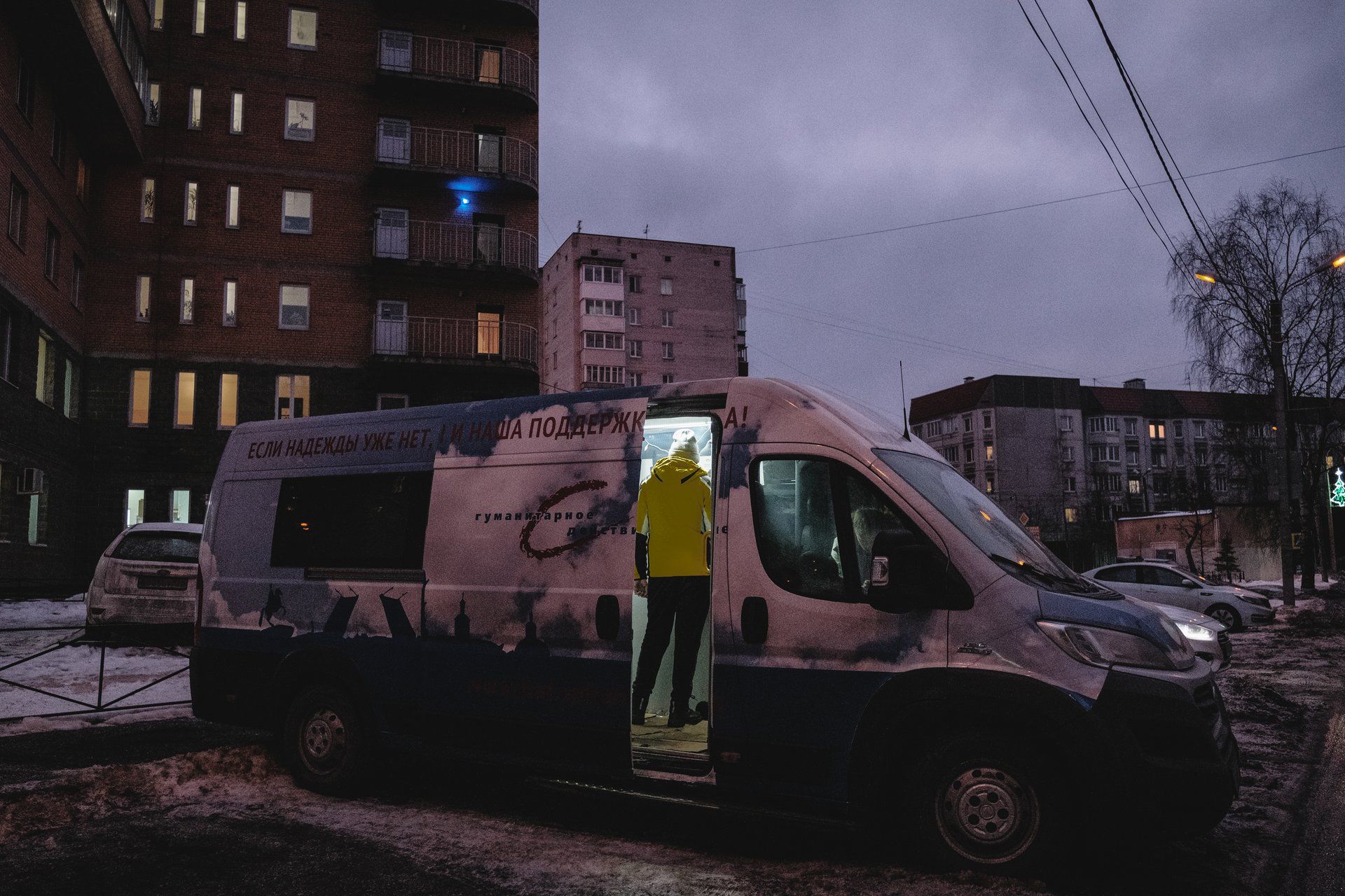 Наш фонд работает с людьми, которые уже попали в зависимость. Как правило, это люди, зависимые от опиоидов, они начали употреблять наркотики в конце 1990-х — начале 2000-х. В Санкт-Петербурге мы единственная организация, которая работает с этими людьми напрямую по модели снижения вреда. Наши мобильные пункты — это переоборудованные туристический и микроавтобусы — выезжают во все районы Санкт-Петербурга. В них люди получают услуги психолога, юриста и социального работника, могут сдать тесты на ВИЧ, гепатиты, сифилис, устроиться на реабилитацию в наркологическую больницу.