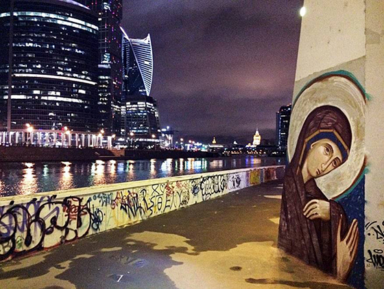 — Некоторые участники проекта «После иконы» (вы, как я понимаю, тоже) занимаются религиозным стрит-артом, что у многих вызывает массу вопросов из-за беззащитности и уязвимости образов, находящихся на улице. Помню, я однажды выложила в Фейсбуке фотографию работы Александра Цыпкова, и один из комментаторов написал, что создавать образы святых на улице — это все равно что кидать розы свиньям. Судя по лайкам, многие с ним согласились. Меня такая формулировка удивила, потому что в ней звучит желание разделить, расколоть, указать, что вот по одну сторону находятся богоспасаемые, а по другую — некие обобщенные чужаки, свиньи. Помимо того что это какой-то антихристианский взгляд, возникает вопрос — а как же проповедь? В данном случае религиозный стрит-арт — это визуальная проповедь, и она, на мой взгляд, очень важна и действенна.