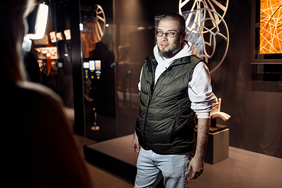 © Кирилл Дзюба Куратор проекта «После иконы» Антон Беликов на открытии Рождественской выставки в Подземном музее Зарядья — То есть к теме иконописи вы пришли именно тогда, когда были на Синае?