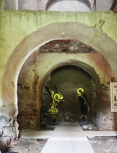 — Я молчу про Софрино, это храмовый дизайн. Есть и есть. Я о другом. Понимаете, у нас ведь как все происходит обычно? Выставка икон — и рядом мед, шубы, рыба соленая, платочки, золотое шитье, матрешки, балалайки. Если вы так относитесь к литургическим предметам, это ваше право. Я не могу запретить это, но я могу отойти в сторону и делать то, что считаю нужным. У вас храмы в золоте, у меня руины в холоде. Мне как художнику и куратору в последнее время неинтересно работать с традиционной музейной и галерейной средой, поэтому в последнее время мы делаем выставки в тех местах, в тех пространствах, которые чем-то уникальны. Как сейчас в Зарядье, где выставочное пространство располагается вокруг сохранившегося фрагмента белокаменной Китайгородской стены. Это уникальное место и уникальная ситуация. Предельная вещественность древней каменной кладки — и рядом что-то цифровое, видеоарт, NFT… Классический музей мертв. Этакая гробница для искусства. Другое дело — природная местность. У меня есть дом в заброшенной деревне в Тверской области. Я там в округе делаю некоторые свои проекты. Там руины, леса, река течет. Первые мои христианские переживания связаны именно с руинами в этой несчастной обезлюдевшей тверской глубинке. Помню еще руины церкви Иакова Апостола на Курской (я вырос в том районе). Там была овощная база, я пацаном лазил там, стирал земляную пыль с фресок, где мог достать. Все это казалось таинственным и недостижимым, утраченным навсегда и тем не менее очень важным.