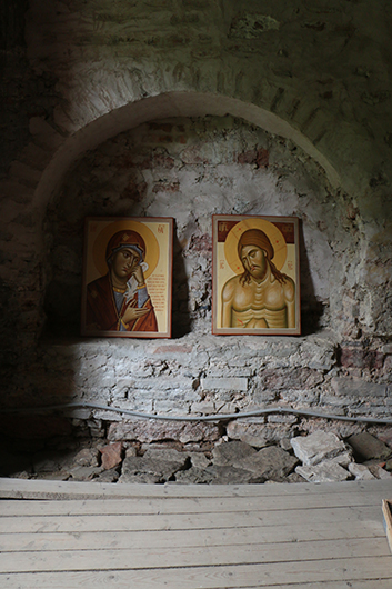 — Нет, преподносилось нормально, и в экспозиционном смысле тоже вроде ничего, но что-то важное как будто упущено… Помню, что после той выставки я в печали вернулся домой и начал думать, в чем же дело. Я стал брать фотографии современных работ современных иконописцев и переводить их в ч/б в фотошопе. И аналогичную операцию произвел с работами, созданными древними иконописцами. И вот тут кое-что понял. Я понял, что многие работы современных иконописцев просто недотянуты ни по цвету, ни по тону. В основном, конечно, по тону. А иногда не просто недотянуты, но и вообще не решены в тоне. А что это значит? Стоит переместить такую икону из софитного освещения в светотеневую среду обыкновенного храма, где свет только от свечей и из окон, и современная икона там просто пропадет. Фактически в этот момент и начался проект «После иконы» (в самом начале название было другим — «Икона после иконы»). В 2017 году мне и моей жене Маше удалось договориться с новгородским музеем и организовать выставку в храме Параскевы Пятницы на Торгу. Это XII век, домонгольский храм. В нем просто нет электрического света (по крайней мере, тогда не было), и именно туда я вывез современные иконы. Для меня это был эксперимент. Я пытался понять, как себя поведет в реальной светотеневой среде классического древнерусского храма современная иконопись. Это была первая выставка, но я тогда еще не оценивал это как некий проект. Финансирования у нас никакого не было. У меня просто были какие-то деньги, которые я захотел потратить таким образом, ради эксперимента, и сделать для себя какие-то выводы. А дальше все заверте...