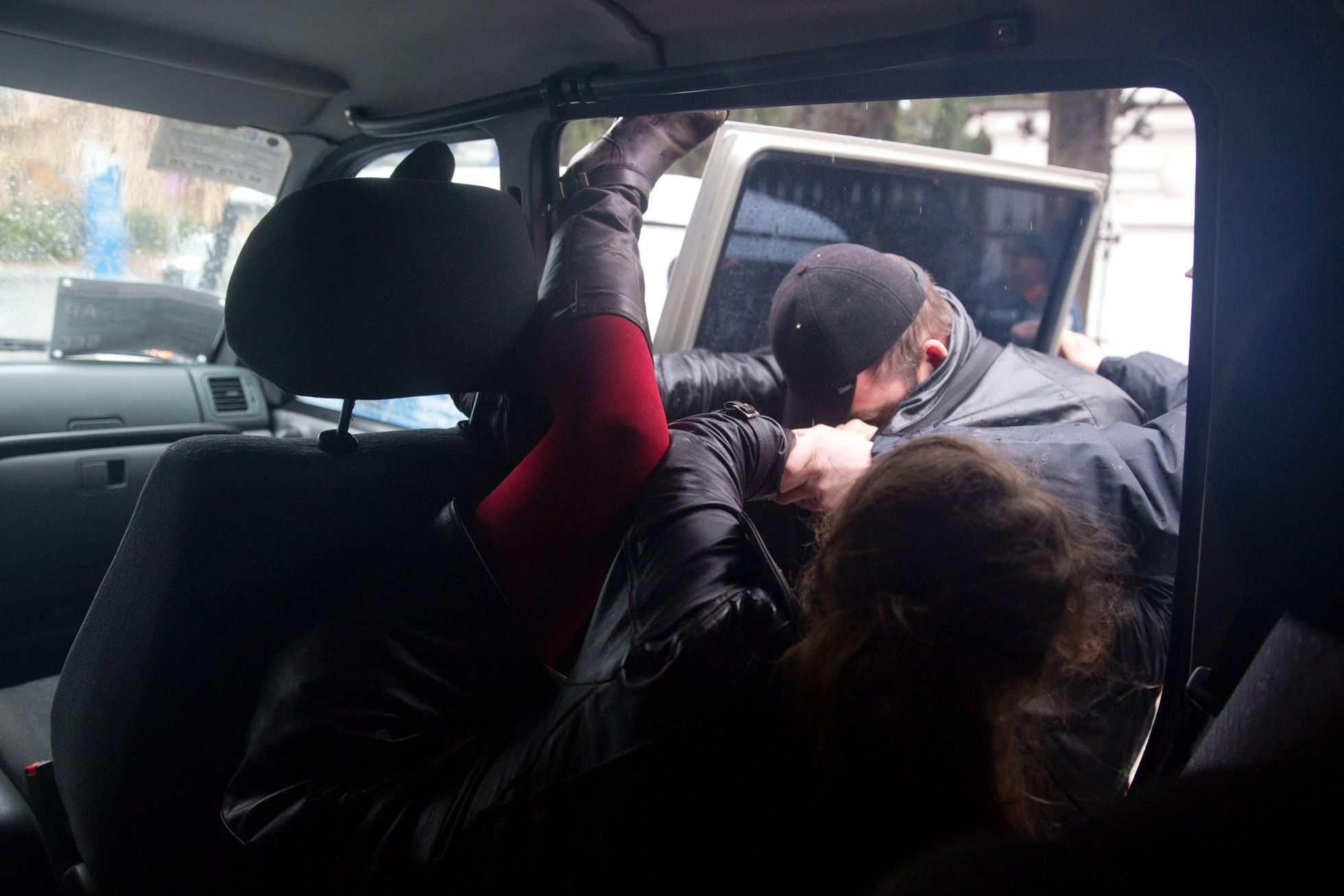 After she was released, Kuzminykh wanted to move to Nizhny Novgorod, where her parents live. As soon as she left her apartment, however, she was detained again. When she saw Veronika Nikulshina, who she had escorted out of prison the previous day, in the detention center, she started to think seriously about emigrating. She and other Pussy Riot members made their plans to leave the country while still in jail. “When they would let us out to walk, Sasha Sofeyev would stand in the window and we would shout back and forth. We shouted to Sasha [Sofeyev], ‘Sasha, we’re going to Georgia!’ He said, ‘Which Georgia?’ And we said, ‘The usual one!’”