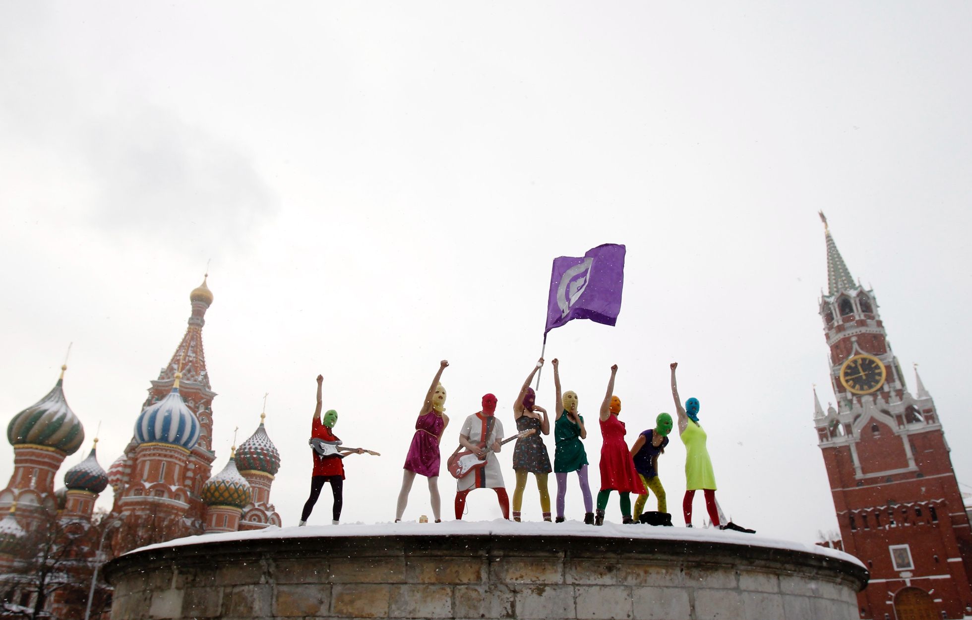 But just a few months later, in February 2014, they donned their balaclavas again and went to Sochi, where the Winter Olympics were being held, to perform their piece, “Putin Will Teach You to Love the Motherland.”