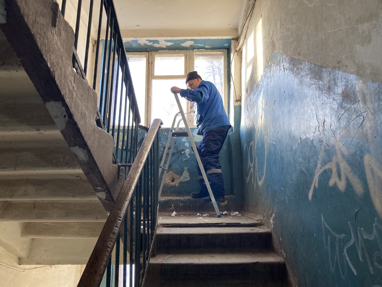 Управляющая компания приступила к выполнению распоряжения чиновников в тот же день, точнее, ночью. Впервые за долгое время за домом убрали снег, теперь жильцы могут дойти до мусорных баков. Уже с утра следующего дня в подъезде начали ставить новые окна. В доме 8 месяцев не было горячей воды. Теперь ее включили, но трубы не выдержали, случился потоп.