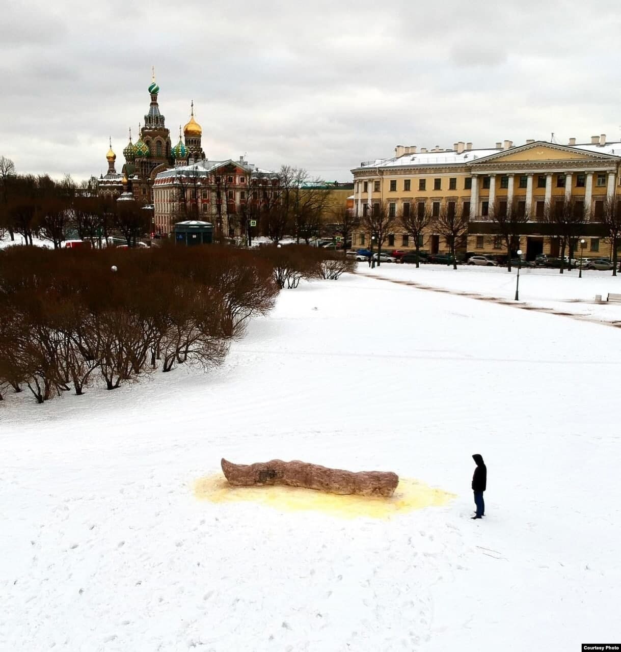 В Петербурге задержали художника Ивана Волкова. Он автор арт-объекта в форме фекалий в центре города. "Пятиметровую какашку" из снега 14 января заметили на Марсовом поле. В полиции считают, что он осквернил место захоронения умерших. Сам он говорит, что никакого смысла в свою работу не вкладывал.