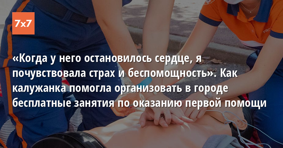 Калужская журналистка Оксана Иванова пять лет назад чуть не потеряла близкого человека, у которого в ее присутствии остановилось сердце. Вовремя приехавшие медики диагностировали острый инфаркт и смогли вернуть пациента к жизни, оказав первую помощь. В тот момент Оксана Иванова почувствовала страх и беспомощность, потому что не могла помочь умирающему, несмотря на знания, полученные на уроках ОБЖ еще в школе. Случившееся подтолкнуло Оксану запустить бесплатные уроки для жителей Калуги по оказанию первой медицинской помощи. В ноябре 2021 года ей удалось воплотить идею в жизнь. Как у нее это получилось — в обзоре «7х7».
