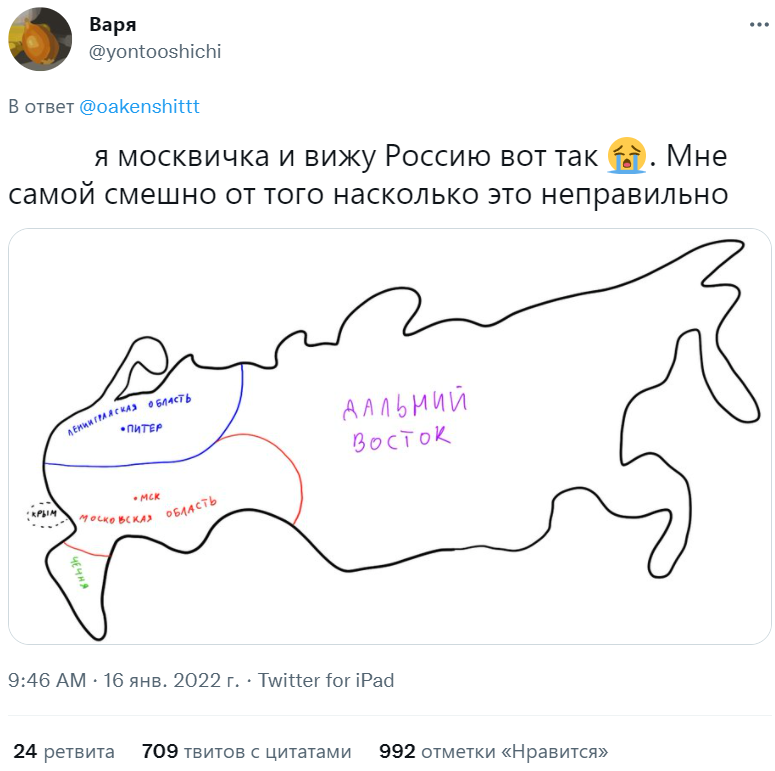 Спор о метро перерос во флешмоб: люди показывают на карте, где расположены разные регионы России. По мнению одной девушки, за Петербургом и Ленобластью начинается Дальний Восток. На других картинках Петербург соседствует со «льдом» и «югами». Некоторые даже не пытаются быть серьезными и пишут на карте «Ошибка 404».