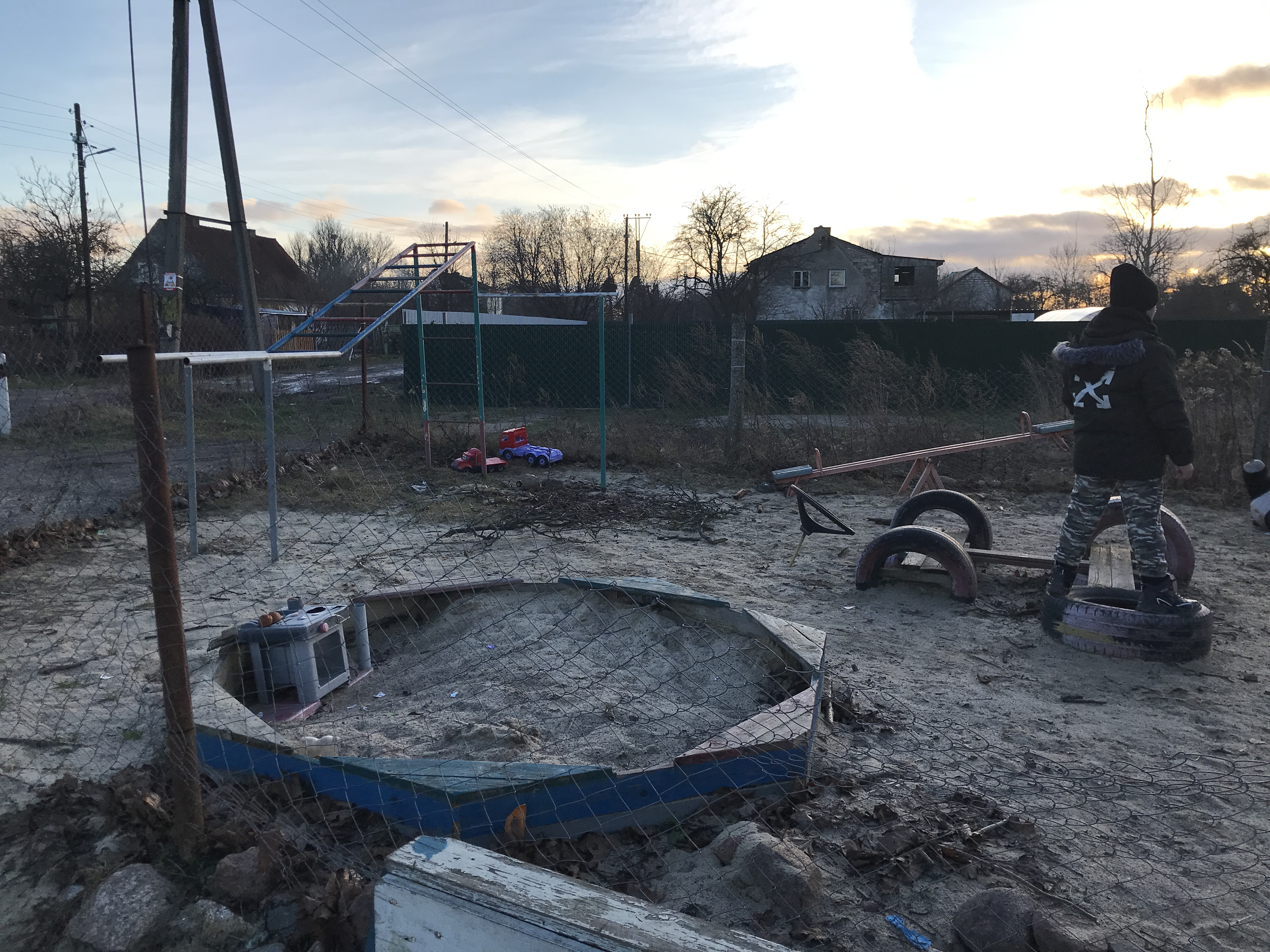 – Похоже на стиральную доску. И это еще считается хорошая дорога. А вот детская площадка, единственная, самодельная, – Гаврилов указывает на потрепанные детские горки. – С водой у нас все здесь очень плохо, постоянные перебои, нет воды. Канализации здесь нет.
