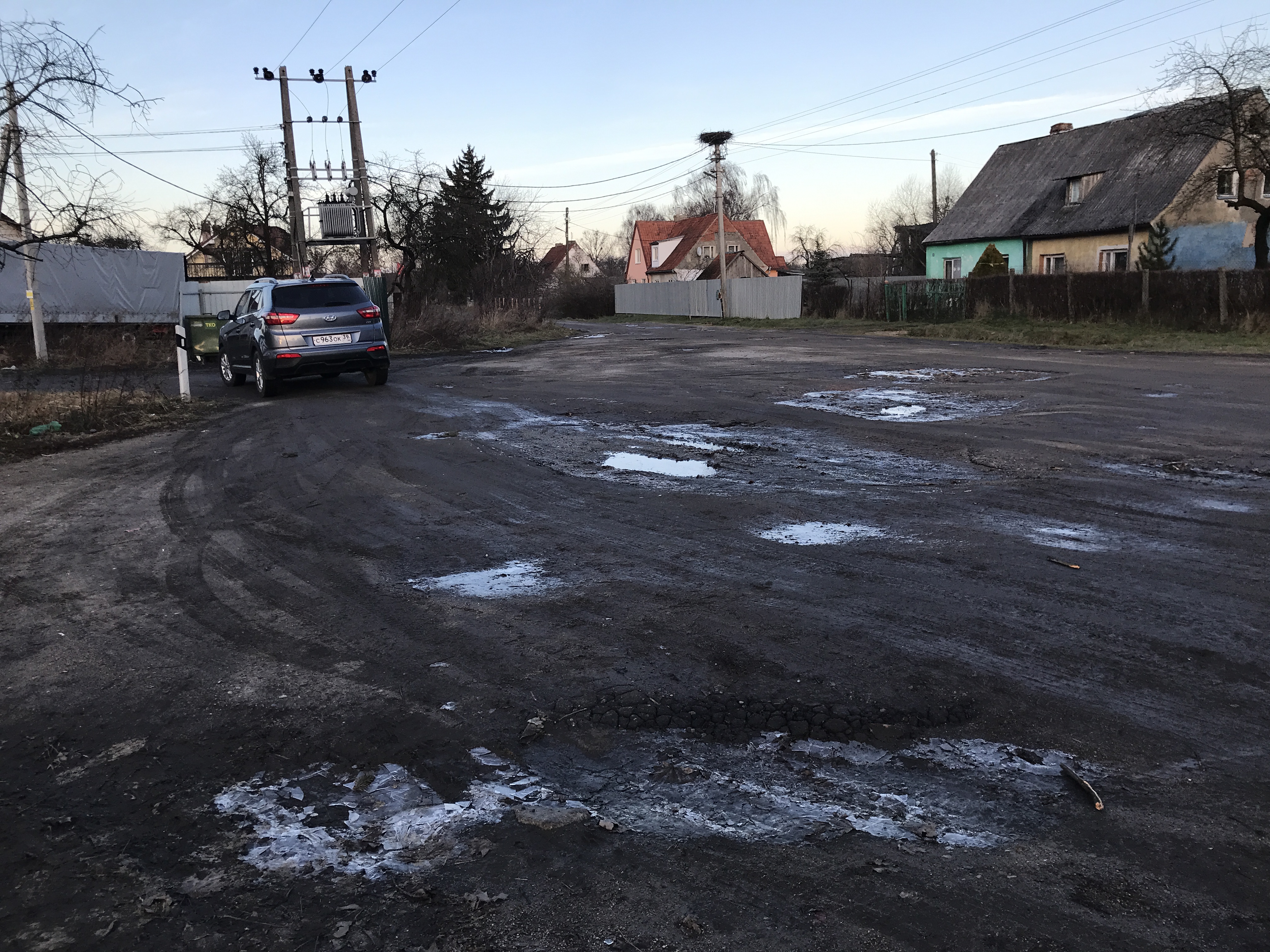 Тут же недалеко – земельные участки для многодетных семей. Выделяли их лет десять назад, а дорогу начали делать только сейчас. С дорогами в этой части Черняховска вообще большие проблемы – ямы, лужи, асфальта нет.