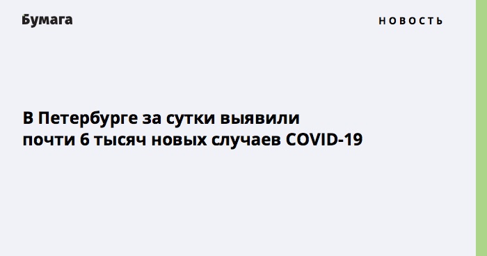 В Петербурге за сутки выявили почти 6 тысяч новых случаев COVID-19