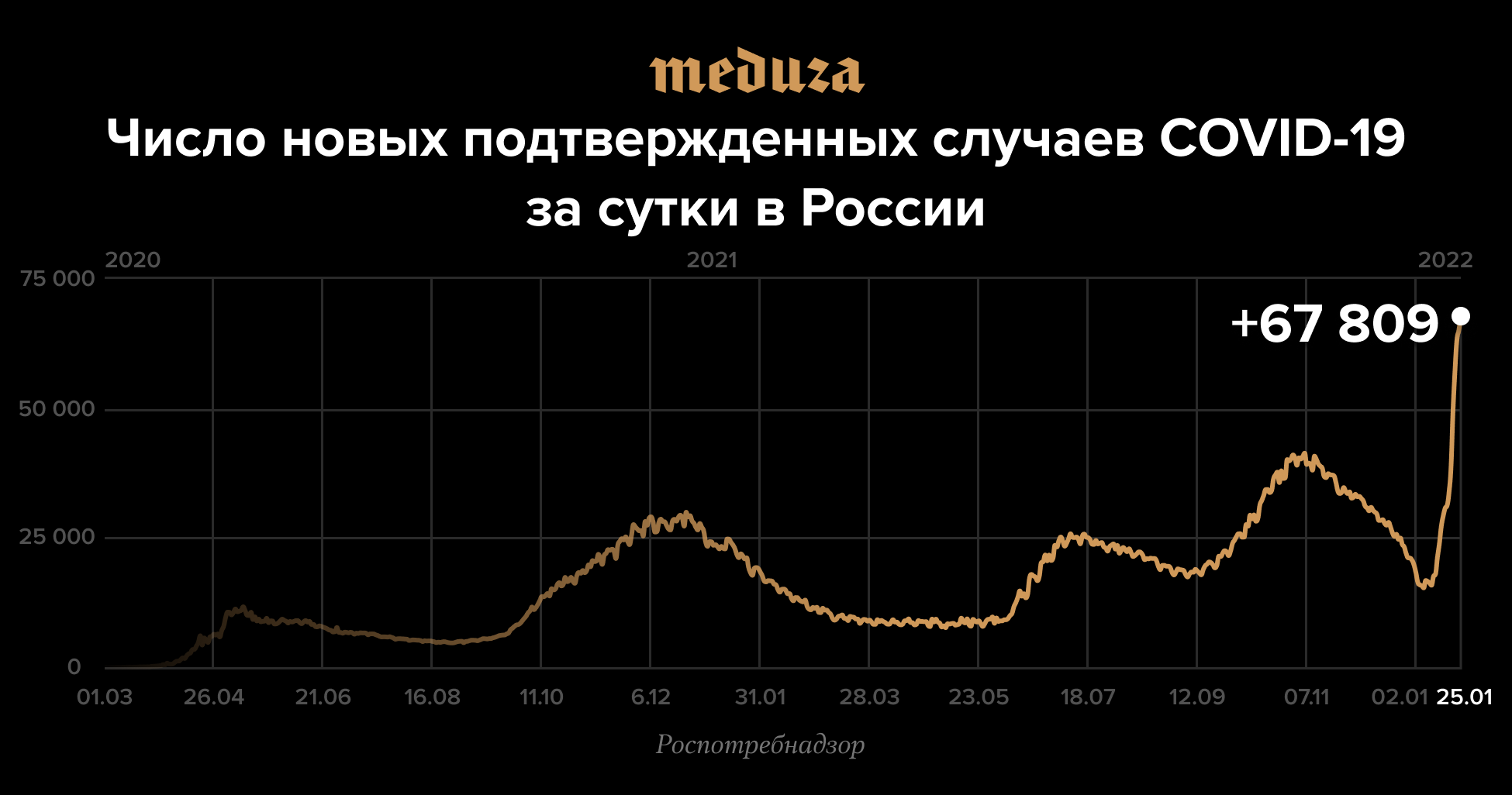 По данным федерального оперативного штаба по борьбе с COVID-19, в России за прошедшие сутки зафиксировано 67 809 новых случаев коронавирусной инфекции. Это очередной рекорд суточной заболеваемости с начала пандемии.