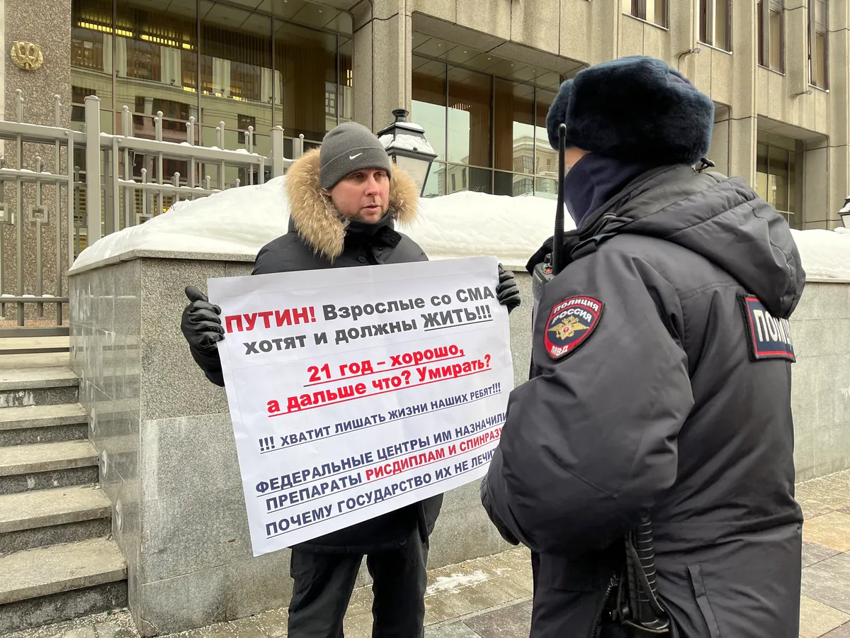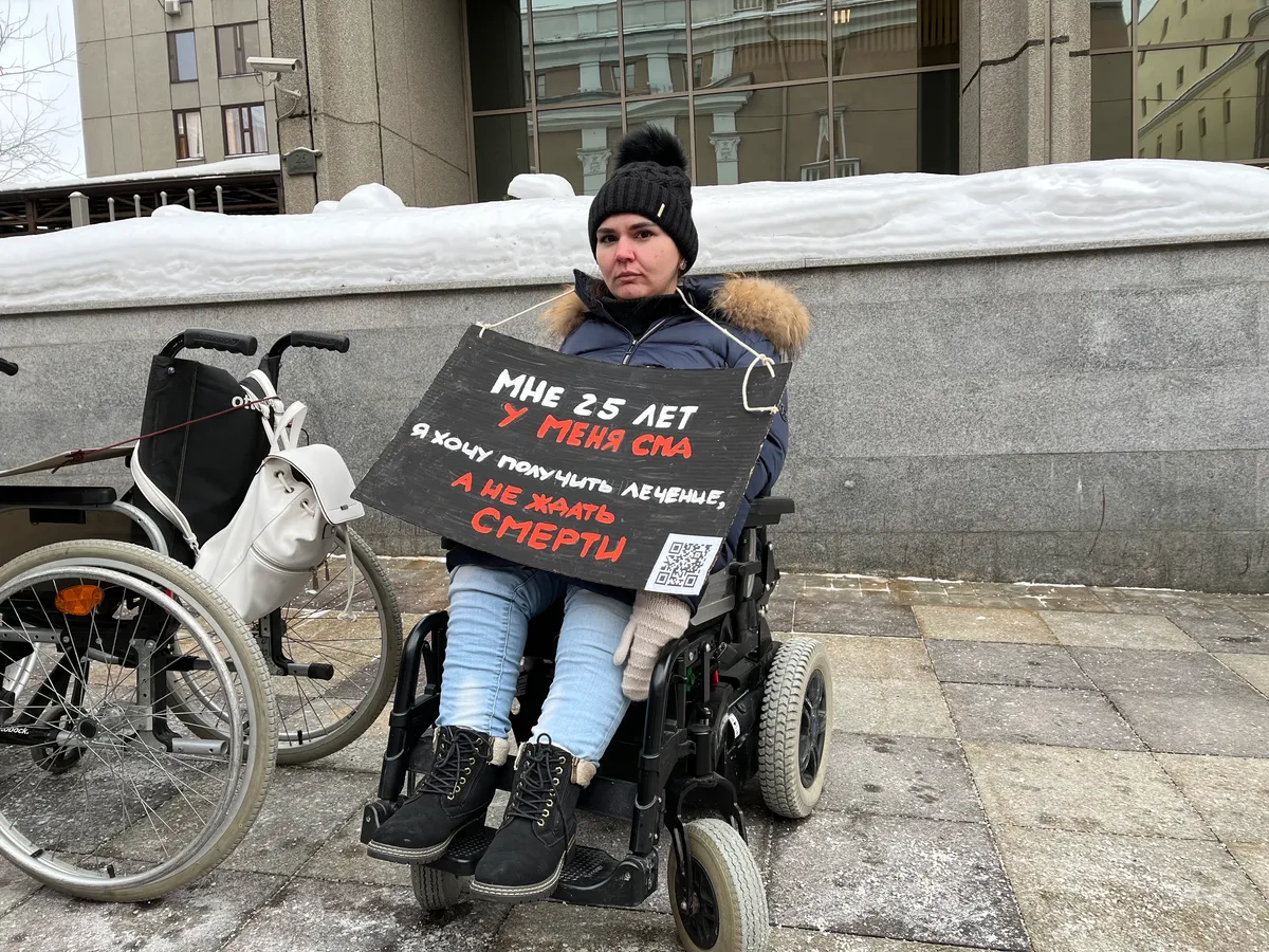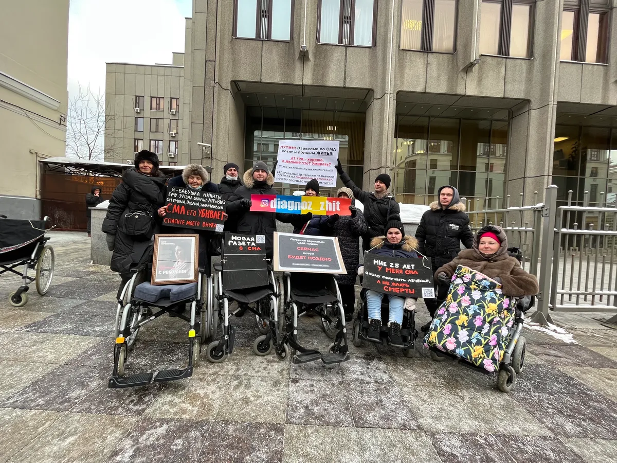 «Я хочу получить лечение, а не ждать смерти»: взрослые пациенты со СМА вышли с пикетом к Совету Федерации