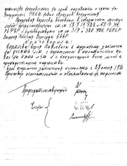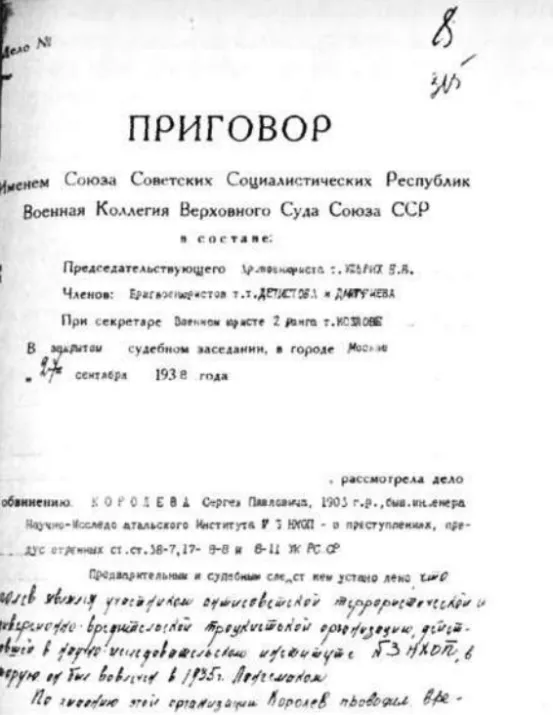 Приговор по делу С.П. Королёва, 27 сентября 1938 года