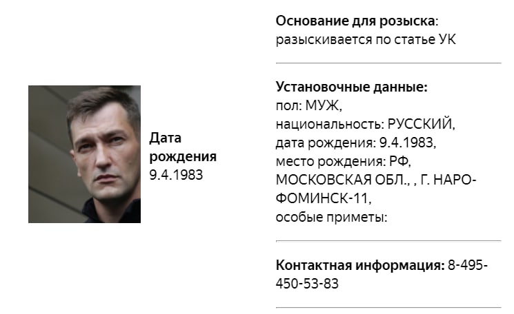 Согласно базе, розыск связан с уголовным делом. С каким именно - не уточняется.