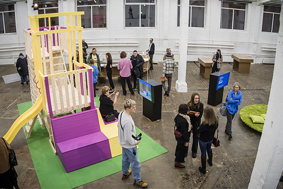 На ней представлены скульптуры, комиксы, видео, инсталляции, YouTube-канал, настоящая детская площадка, а также литературные тексты, один из них — в форме книги для детей.