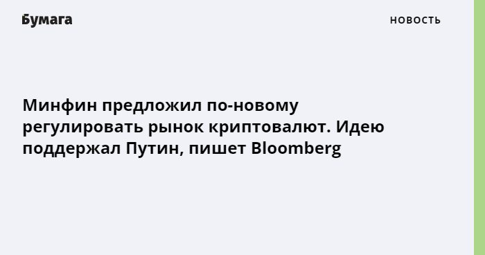 Bloomberg со ссылкой на три неназванных источника, знакомых с обсуждением темы, сообщает, что идею регулирования рынка криптовалют вместо его запрета поддержал президент Владимир Путин. По данным «РБК», предложения Минфина также одобрила ФСБ.