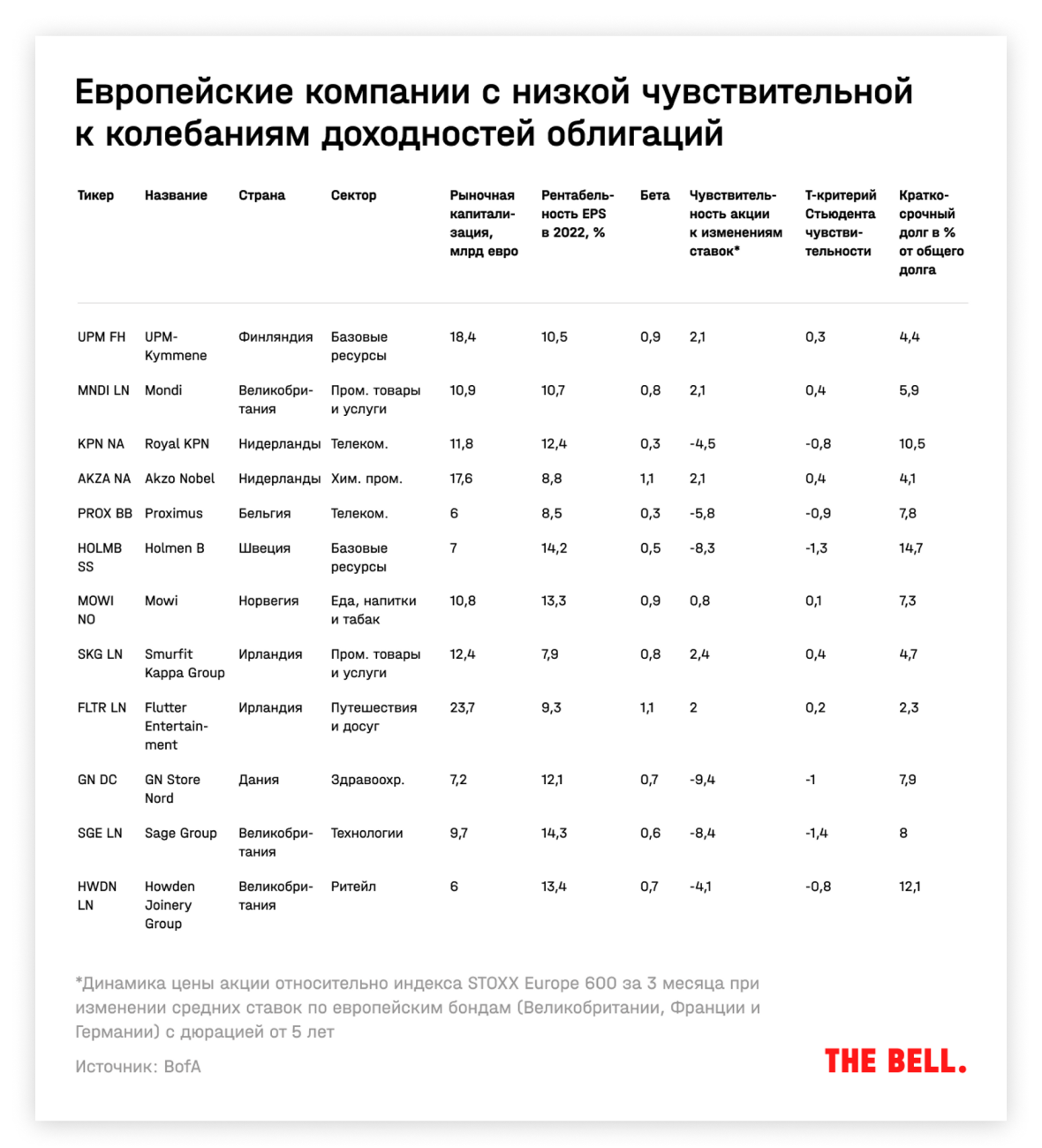 По мнению BofA, ужесточение денежно-кредитной политики в США и рост доходности облигаций могут стать ключевыми факторами для рынка акций в 2022 году. Инвестбанк выбрал 12 европейских акций с исторически низкой чувствительностью к колебаниям доходности облигаций, которые, по мнению аналитиков, помогут снизить риски волатильности из-за повышения ставок.