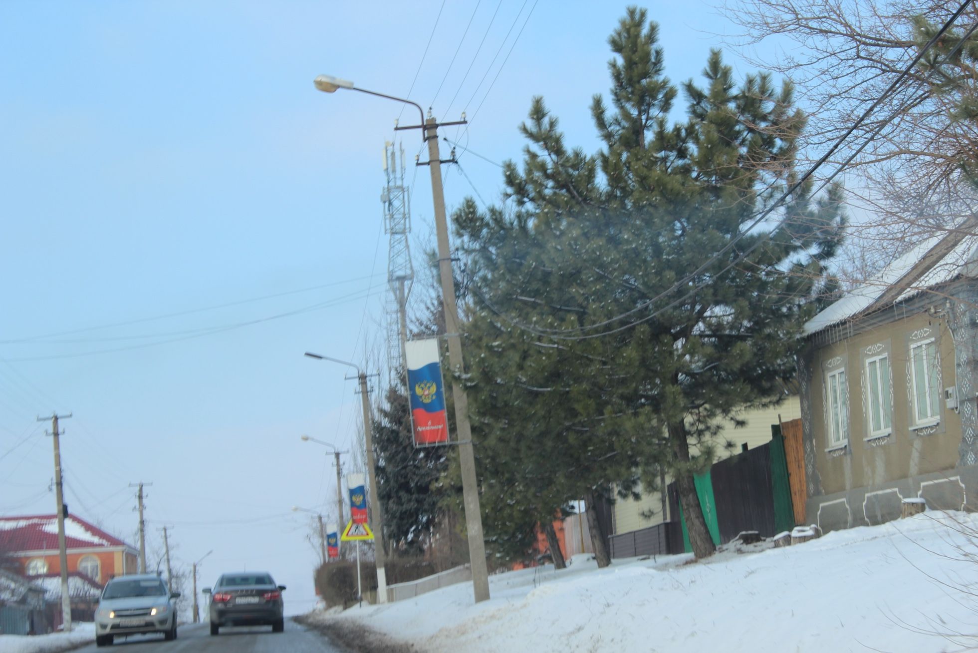 Дорога из Алексеевки в Куйбышево, ближайшее к границе с ДНР село одноименного района, занимает меньше получаса. На каждом придорожном столбе — надпись «С праздником!» на фоне государственного герба и флага. О каком празднике идет речь, не уточняется.