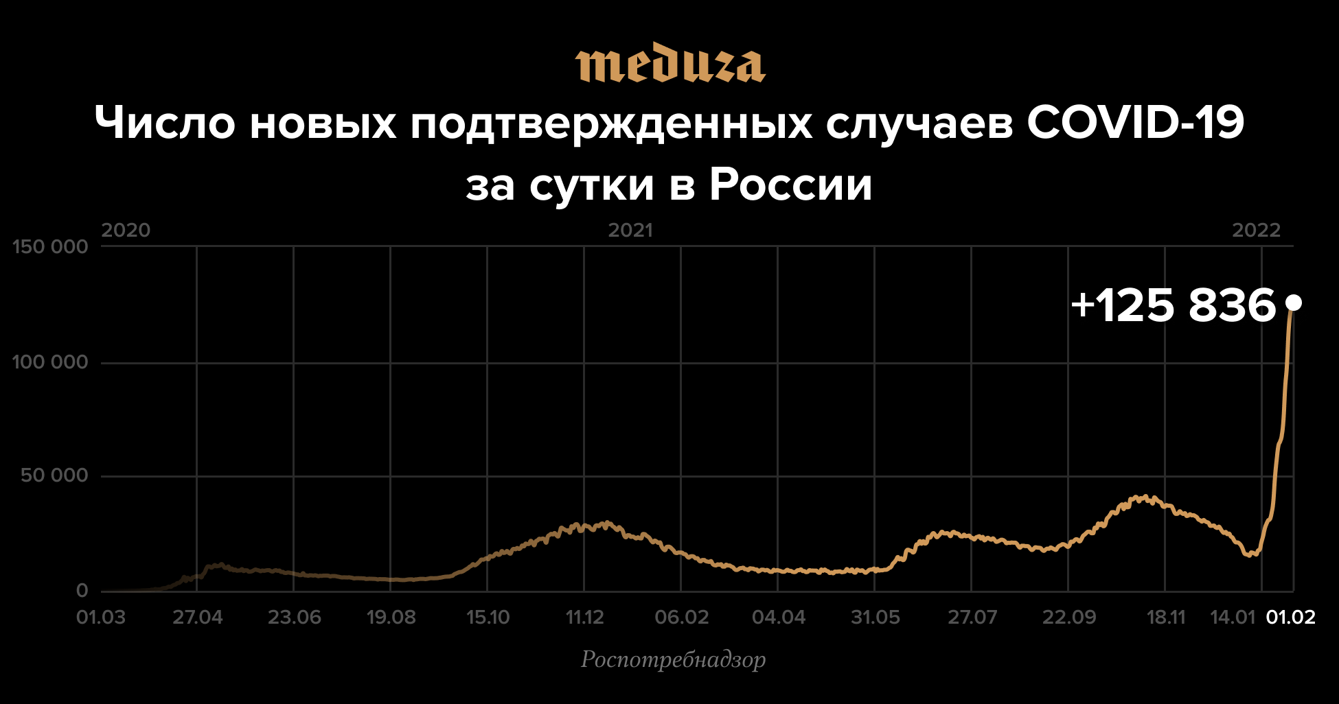 В России вновь рекорд суточной заболеваемости ковидом — 125 836 случаев. Число госпитализаций выросло почти вдвое