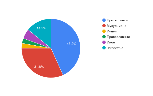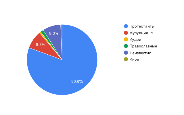 Эксперты не фиксировали правонарушения в отношении последователей учения Свидетелей Иеговы и других религиозных организаций, ряд из которых признан Верховным судом Российской Федерации экстремистскими. Мы не согласны с позицией суда, однако ограничили свой поиск религиозными организациями, которые действуют в России на официальном основании.