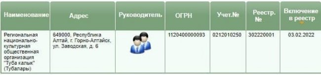 В реестр НКО — «иностранных агентов» внесли алтайскую организацию «Туба калык»