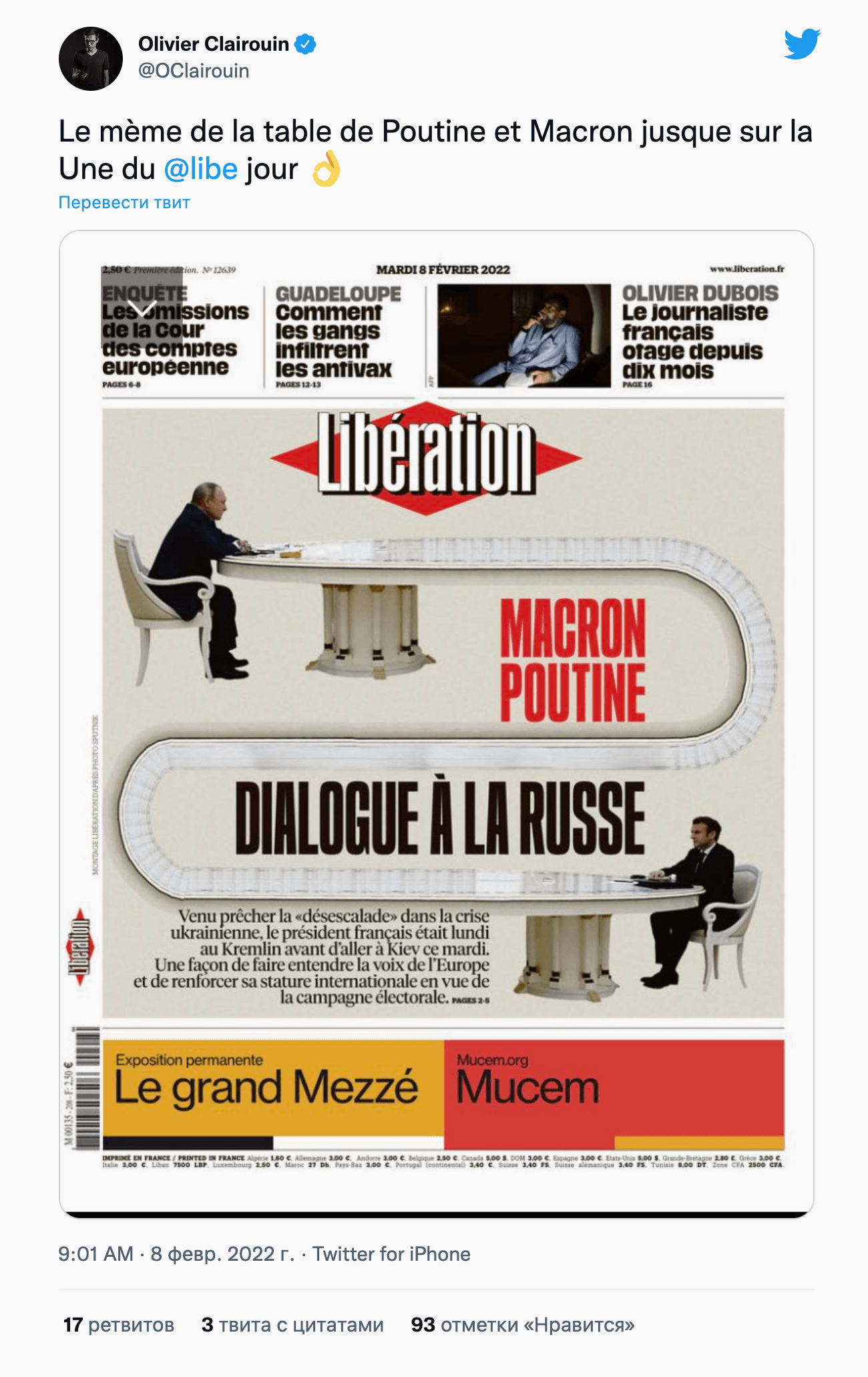 Стол попал на обложку французского издания Libération.