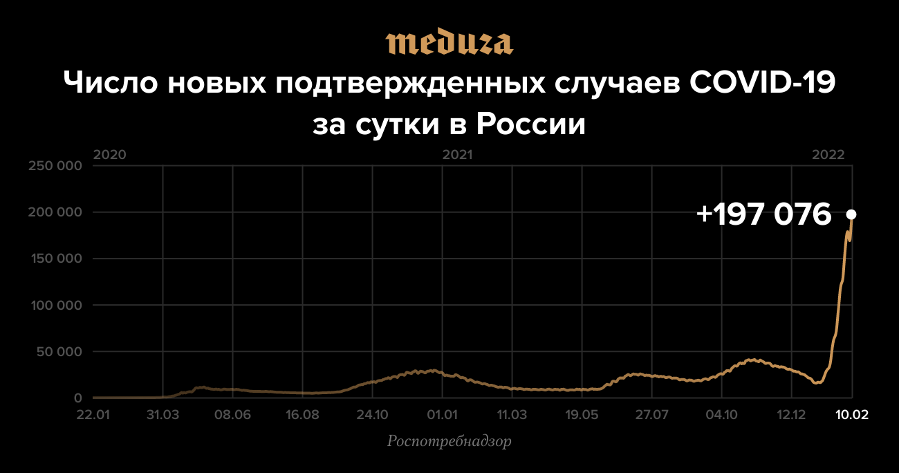 С 21 января в России ежедневно обновляются новые рекорды заболеваемости ковидом, единственным исключением стало 7 и 8 февраля, когда был зафиксирован небольшой спад.