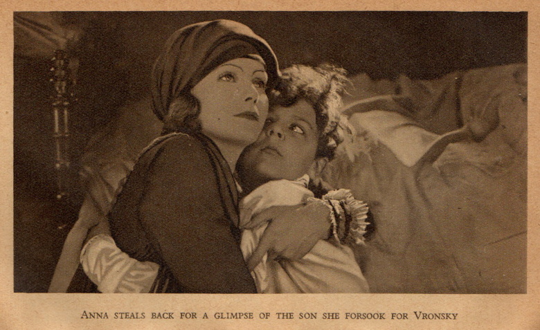 Свидание Анны с сыном: сцена из американского немого фильма "Любовь" (1927) по мотивам романа Л. Н. Толстого "Анна Каренина". В роли Анны — Грета Гарбо, Сережа Каренин — Филипп де Ласи