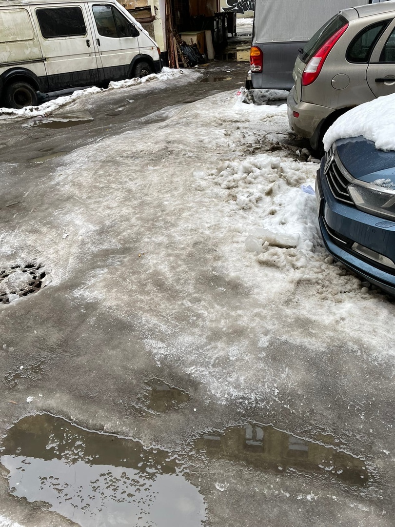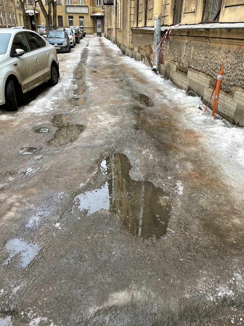 Спустя неделю некоторые жители Центрального района продолжают жаловаться на плохую уборку. «Позавчера [15 февраля] во дворе дома на Воскресенской набережной провалилась в ледяную лужу по середину икры, съехав в нее с ледяной глыбы», — рассказала участница Клуба друзей «Бумаги» Ася.