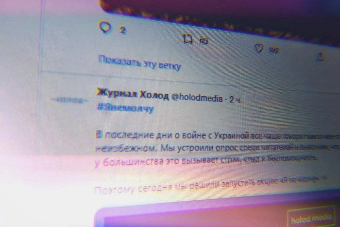 В «Холоде» рассказали, что спросили читателей, какие эмоции вызывают у них сообщения о возможности войны с Украиной. Большинство ответили, что испытывают страх, стыд и беспомощность. Акцию издание решило запустить, «чтобы напомнить о том, что у каждого из нас есть голос и мы можем вслух высказать свое мнение о войне».