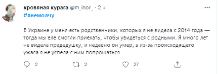 Издание «Холод» запустило в соцсетях акцию #янемолчу и просит пользователей под этим хештегом высказываться о страхах из-за сообщений о возможной войне и о том, что связывает их с Украиной.