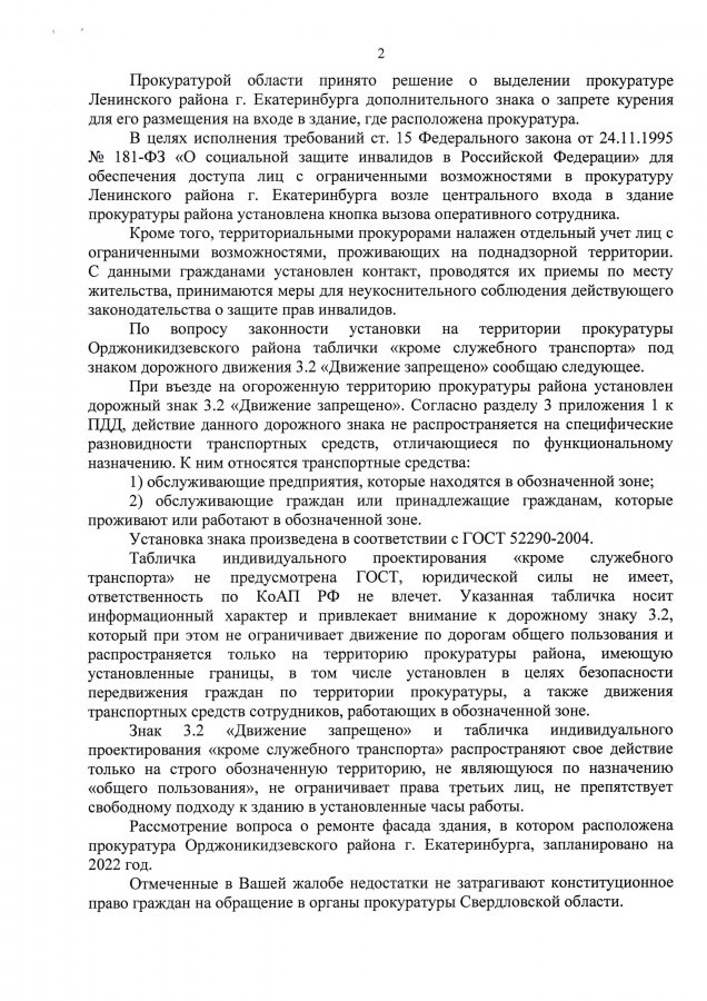 - Поощрить начальник по рассмотрению обращений граждан прокуратуры Свердловской области Пачин А. Л. за честный и откровенный ответ, вскрывающий проблемы в работе прокуратуры. А также за то, что выданы были все необходимы знаки, включая таблички со шрифтом брайля.