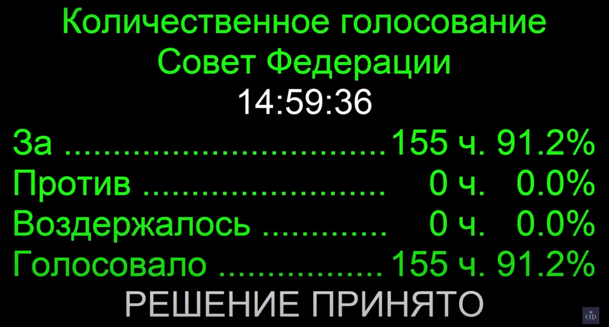 Ранее соответствующие договоры единогласно ратифицировали депутаты Госдумы. За ратификацию проголосовали 400 депутатов, против — 0, воздержавшихся также не было.