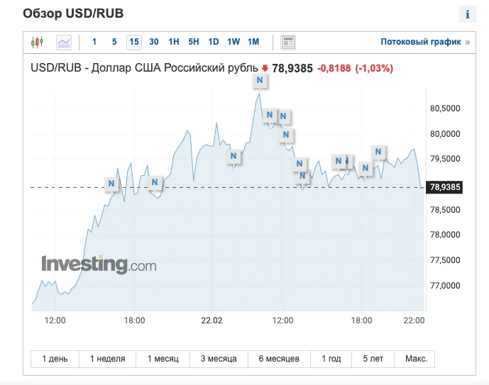 После выступления Байдена рубль укрепился. РБК отмечает, что по сравнению с дневными максимумами курс американской валюты резко снизился по отношению к рублю.