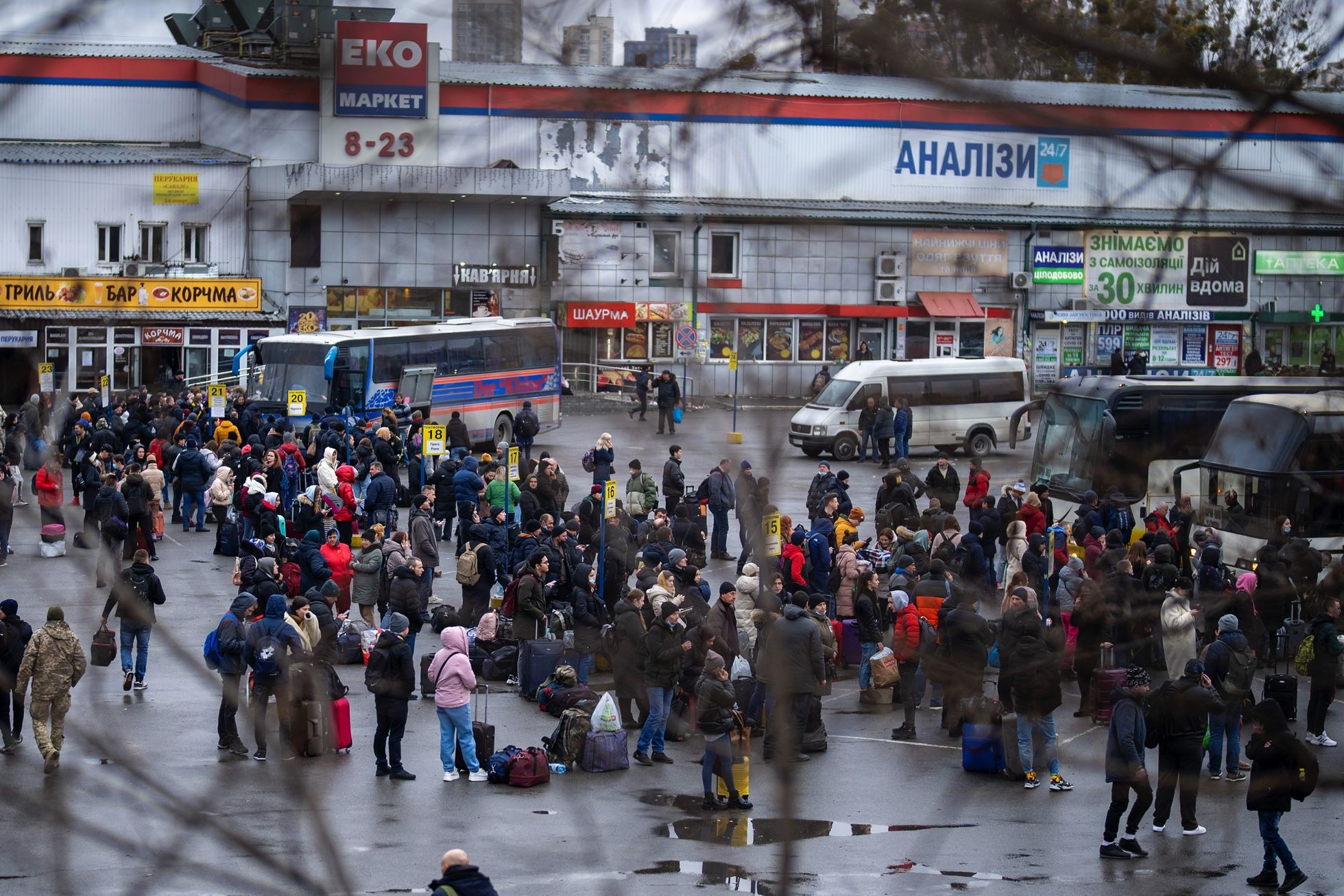 После начала войны многие киевляне решили вообще не выходить из дома; но некоторые все же попытались выбраться из города. На центральном железнодорожном вокзале и на автостанции, расположенной рядом, собрались толпы. С сумками, детьми и животными они штурмовали кассы. За всем этим флегматично наблюдали полицейские с автоматами.