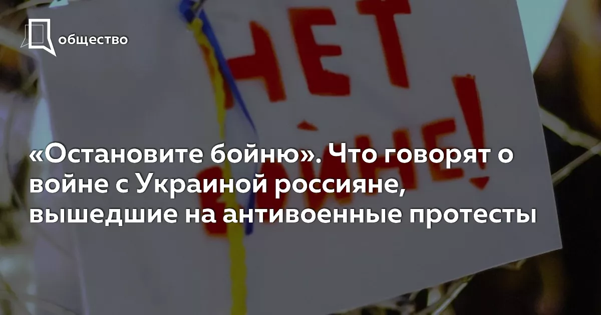 В день начала войны с Украиной в 56 российских городах прошли антивоенные митинги, на которых задержали более 1500 человек. На акциях в Москве и Петербурге мы поговорили с гражданами, вышедшими протестовать против вторжения в Украину, и узнали у десятков людей разных возрастов и профессий — от офис-менеджеров до художников, — почему они не побоялись выйти на улицы, что думают о начале боевых действий и какие слова хотели бы сказать тем, кто поддерживает войну.