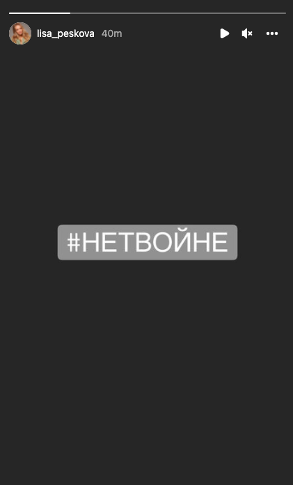 Дочь пресс-секретаря президента Елизавета Пескова тоже выступила против войны. Позднее эта сториз пропала из аккаунта.